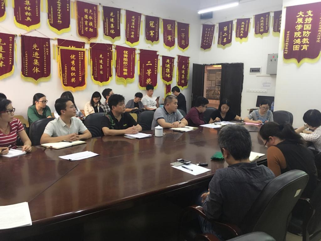 (通讯稿 张宁)10月25日下午,我院党总支在11栋108会议室利用教学例会集中学习,同时传达广东省委工委和教育部党组《关于学习贯彻全国教育大会精神》和十九大精神,并对我院党建工作进行研讨,以习近平新时代思想为指导,带领全院教职工聚力“双转”工作,积极作为推进应用型大学建设。学院副院长张志红、党总支书记谭飞等领导和全体教师出席会议。