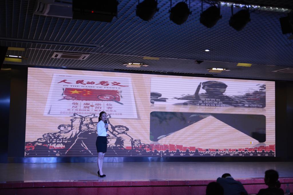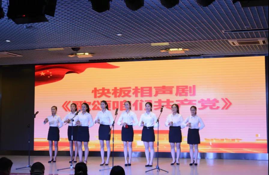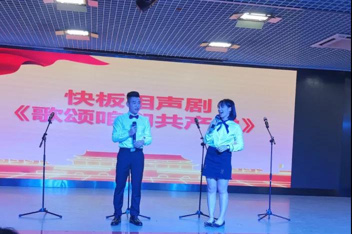 伴随着庄严肃穆的国歌,比赛正式拉开帷幕。比赛设置为学生组比赛和教师组展示赛两个环节。在学生组比赛中,所有的参赛选手精心准备,通过简练平实的语言、生动感人的事例和直观易懂的画面,来认识党课、理解党课、并诠释党课,用小故事讲述大道理,为在场的所有观众,奉上了一场丰富的“思想盛宴”。“中国进入新时代,经济增长稳平快……”由党员学生们带来的中场节目——快板相声剧《歌颂咱们共产党》,新颖而独特的形式,更是让观众们眼前一亮,击节铿锵的演唱,火爆抓人的艺术效果,都给在场的观众留下了深刻的印象。