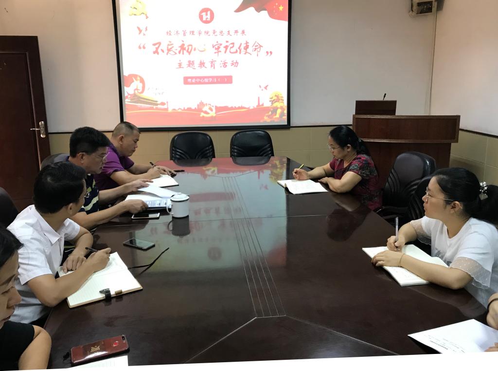 (通讯员 钟月月)9月26日上午,William威廉官网党总支在7栋222会议室开展“不忘初心,牢记使命”第一次主题教育专题学习活动。会议由党总支书记谭飞主持,理论学习中心组成员参加。