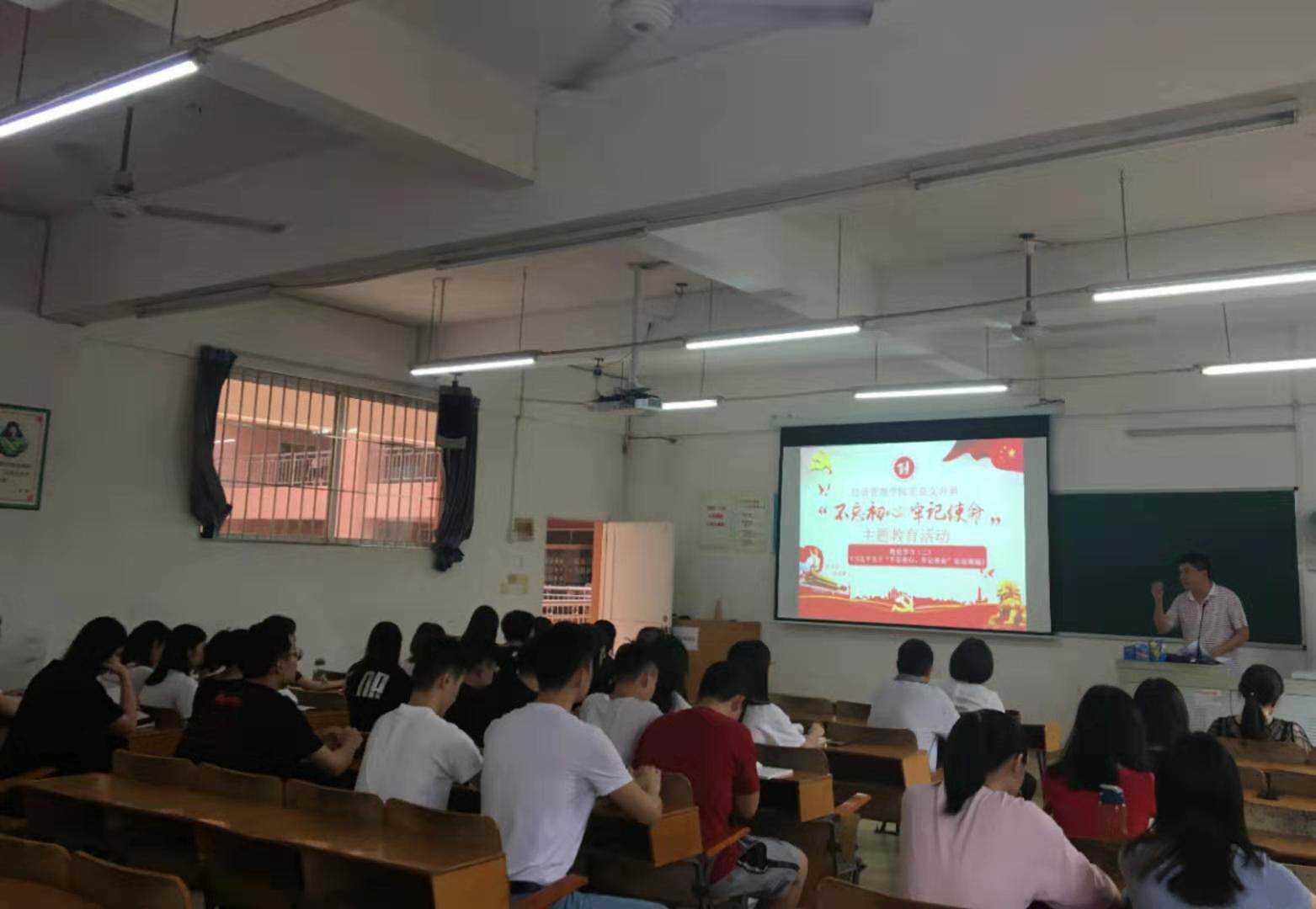 (通讯员 何倩怡)10月9日下午,我院党总支在7栋206室组织开展“不忘初心,牢记使命”主题教育,专题学习《习近平关于“不忘初心、牢记使命”论述摘编》。党总支书记谭飞主讲,学校党委委员、副院长张志红及教工党员、学生党员共40余人参加学习。