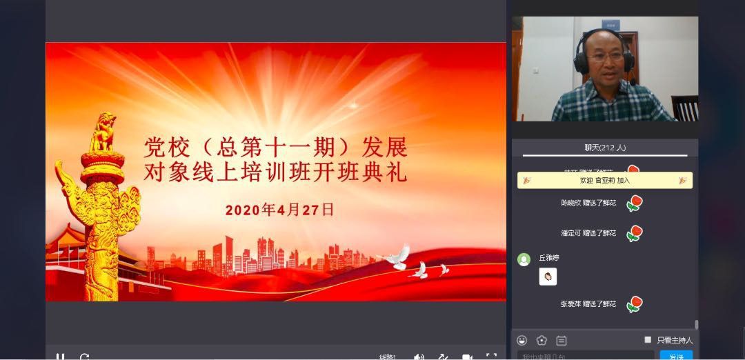 (通讯员:何倩怡 罗润彬 )为深入学习习近平新时代中国特色社会主义思想,进一步贯彻落实党的相关政策文件,扎实做好疫情防控期间党员发展工作,4月27日晚,我院第34期发展对象参加了2020年春季学期党员发展对象网络培训班开班仪式。本次开班仪式由党委工作部部长陈朝阳主持。