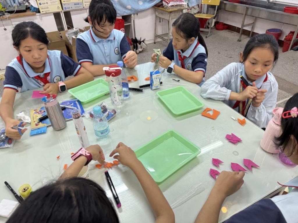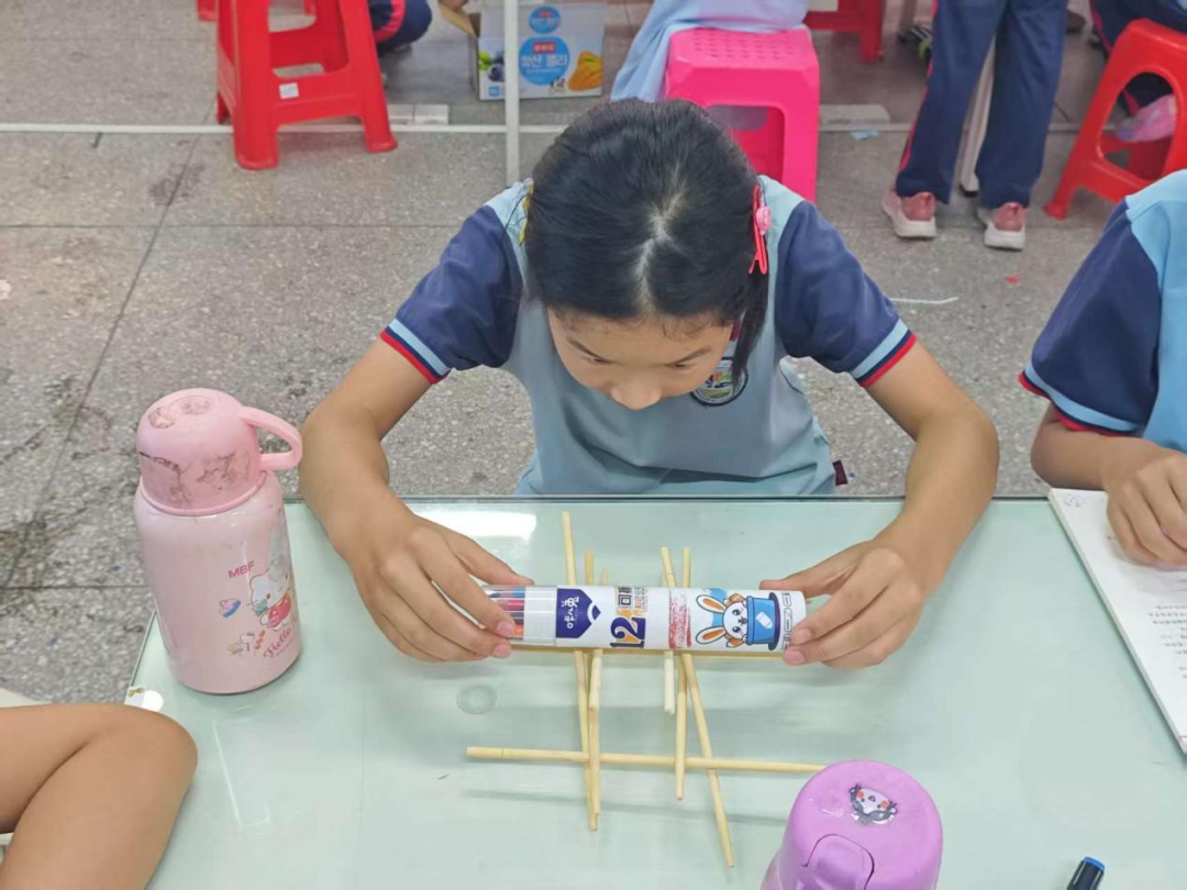 科学小实验的乐趣藏在每一次动手、观察和发现的瞬间,就像打开惊喜盲盒。通过突击队员的引导,把常见的材料利用起来,瞬间点燃学生的好奇心。同学们跟随突击队员的脚步,在实验过程中释放自己的想象力,把实验成果和小组分享。实验完成后,突击队员对实验原理进行讲解,让学生说出自己的理解。