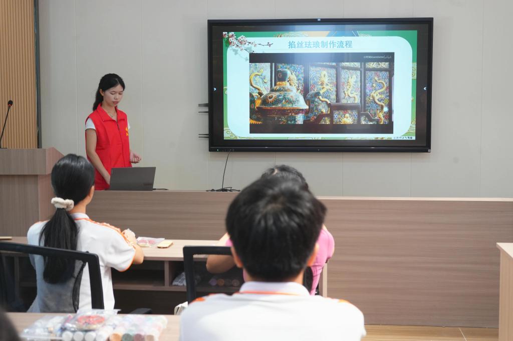 课堂伊始,团队成员深入浅出地阐述了掐丝珐琅所蕴含的深厚文化背景。从其起源与发展历程,到不同历史时期所承载的文化内涵,同学们沉浸在这一传统工艺的历史长河中,对其有了全面且深入的认识。