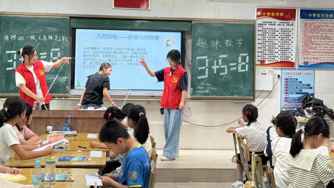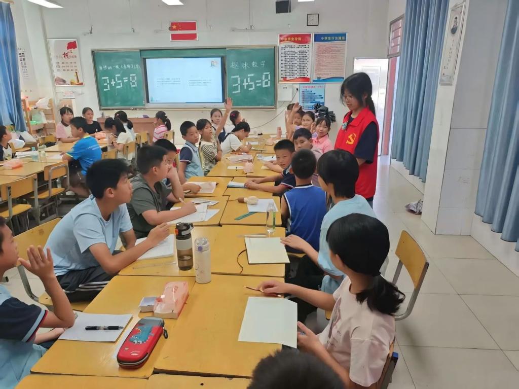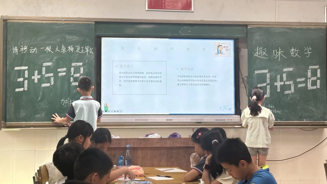 突击队员精心设计了一场别开生面的数学探索活动。突击队员巧妙地运用“移动木棒,更正算式”这一经典数学题,点燃了学生们的思维火花。在活动中,突击队员深入浅出地向学生们讲述了数学的起源与发展,向他们清晰地阐释了数学中所蕴含的丰富概念。