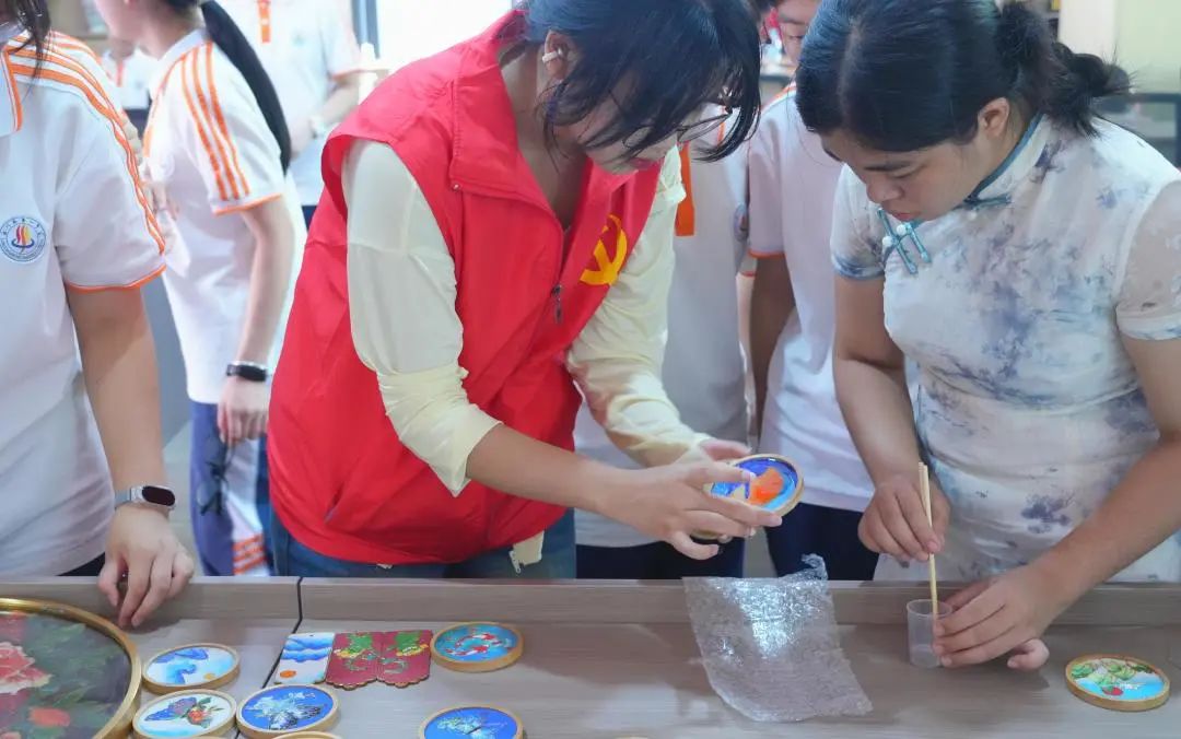 随后,队员们对部分同学进行了采访。同学们纷纷表示,这次掐丝珐琅特色课堂让他们收获颇丰,不仅学到了丰富的知识和制作技巧,还锻炼了自己的动手能力。在大家的共同努力下,一件件精美的掐丝珐琅作品逐渐呈现,闪耀着独特的光芒。