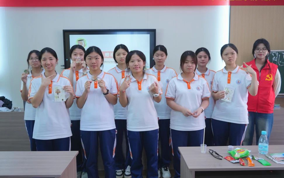 为了让课堂更加生动有趣,队员们还精心准备了知识问答游戏。问题涵盖掐丝珐琅的历史、制作工艺等多个方面。同学们热情高涨,积极踊跃地回答问题,现场气氛十分活跃。答对的同学还获得了相应的奖励,这进一步激发了大家的学习热情。此外,课堂上还进行了几个趣味游戏,同学们纷纷积极参与,欢声笑语回荡在教室里。