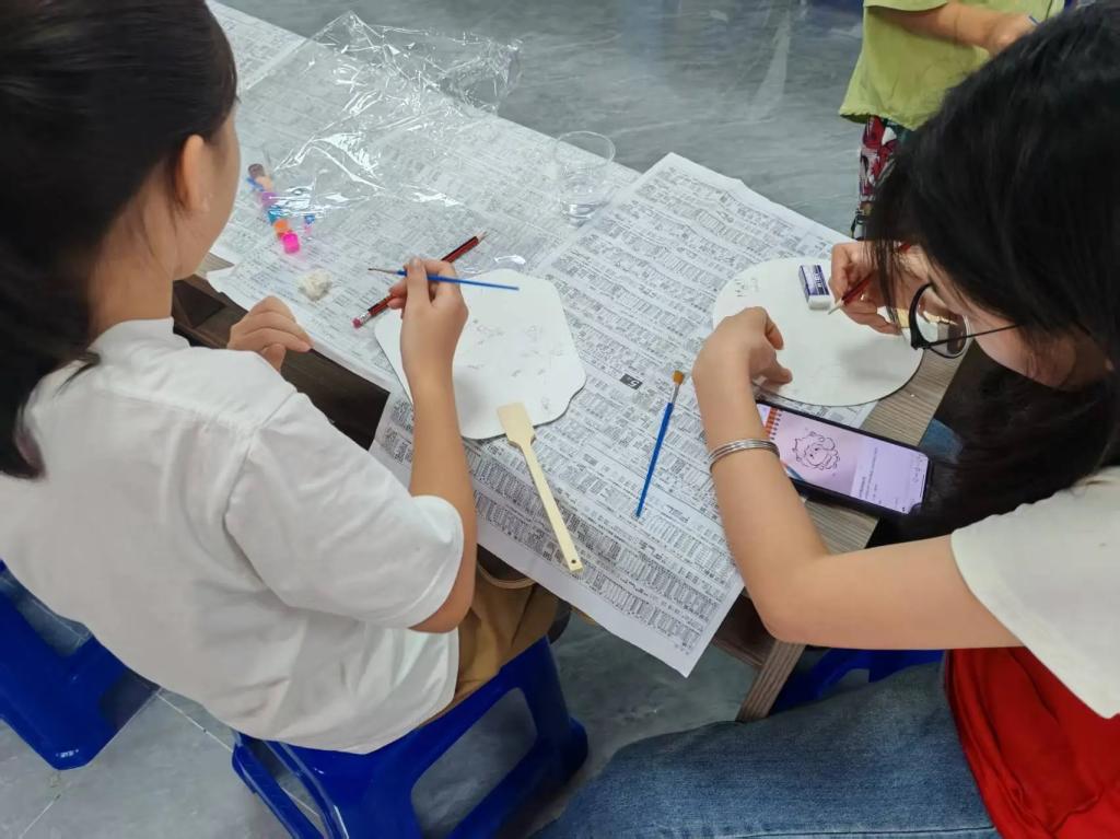 最后一课的阳光格外温柔,空白团扇在桌上静静等待。志愿者们俯身教孩子们勾勒线条,指尖轻点间,绢面上绽放出孩子们广泛的想象力与创造力。