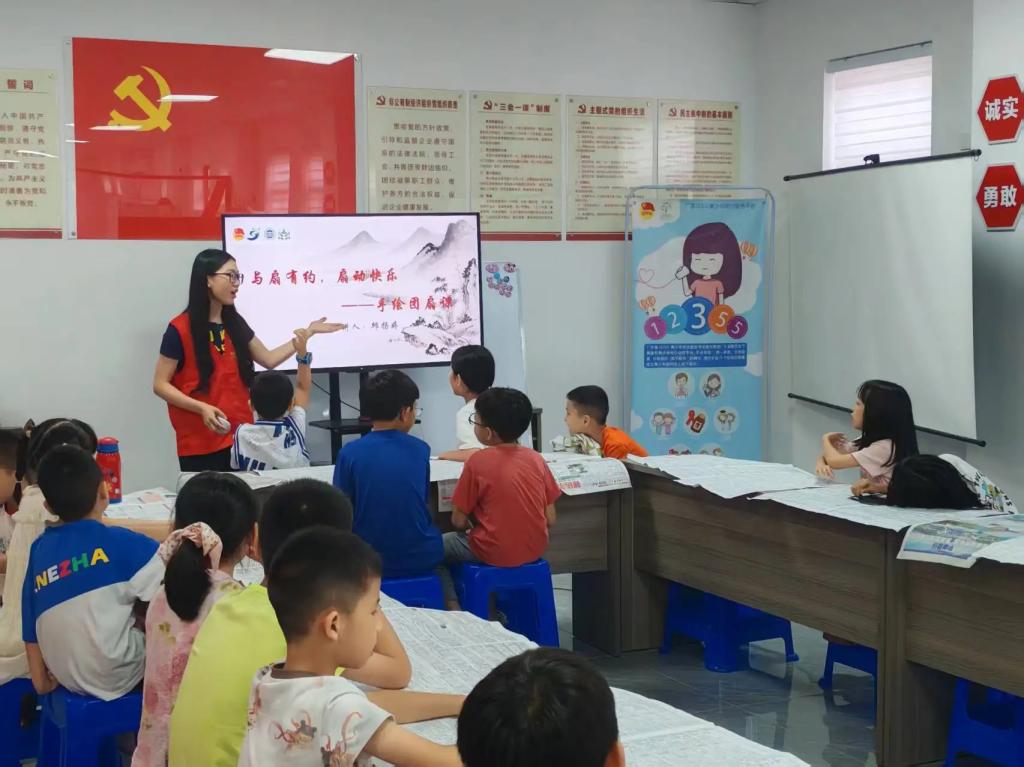 有孩子将团扇轻轻放在志愿者掌心。风穿过窗棂,吹动扇面,带走暑气却带不走这段时光。“三下乡”的故事在此落笔,但团扇里的温暖,会永远随风生长。