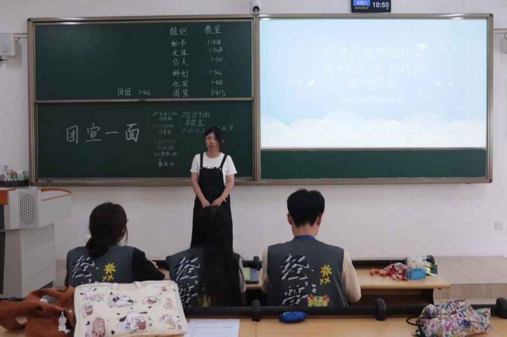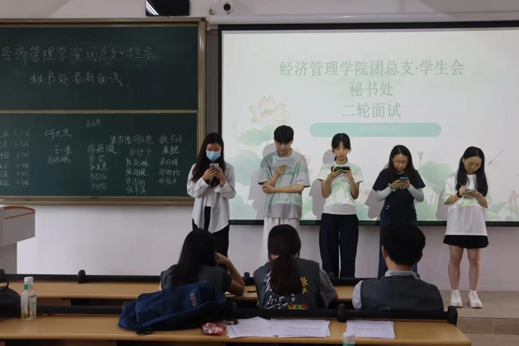 面试现场,团总支与学生会的各部门副部长秉持公正、严谨、负责的态度,围绕“提升服务质量、夯实组织基础”的宗旨,对每一位面试者进行细致评估与互动提问。面试同学们精神饱满、从容自信,展现出经管学子良好的综合素质与积极向上的精神风貌。 启航文学社作为学院文化传播的重要阵地,注重考察学生的文字表达能力、创意策划与文学素养;学风纪律部则聚焦学生的责任心、纪律意识与执行力,共同构建风清气正的校园氛围。两大学生组织各具特色,互为补充,为同学们提供了多元成长的平台。