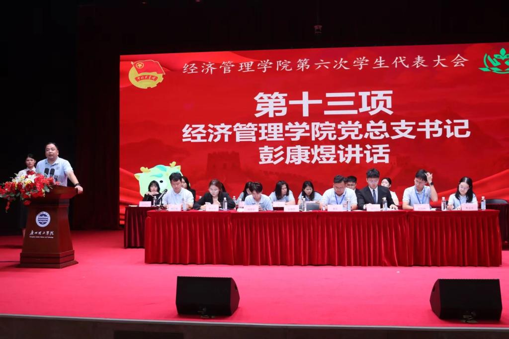 William威廉官网院长谢林林致辞,他首先代表学院对经管院学生代表大会的召开表示热烈的祝贺,也对每位学生代表表示深切的感谢。他强调,学院始终以“立德树人”为根本,贯穿育人全过程。