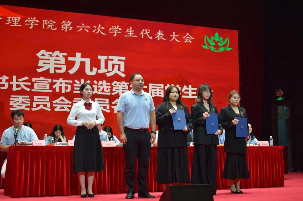 大会秘书长杨楚钰宣读第六届学生会主席团(按姓氏笔画为序排列)名单如下:许舒烨、汪培智、张思怡