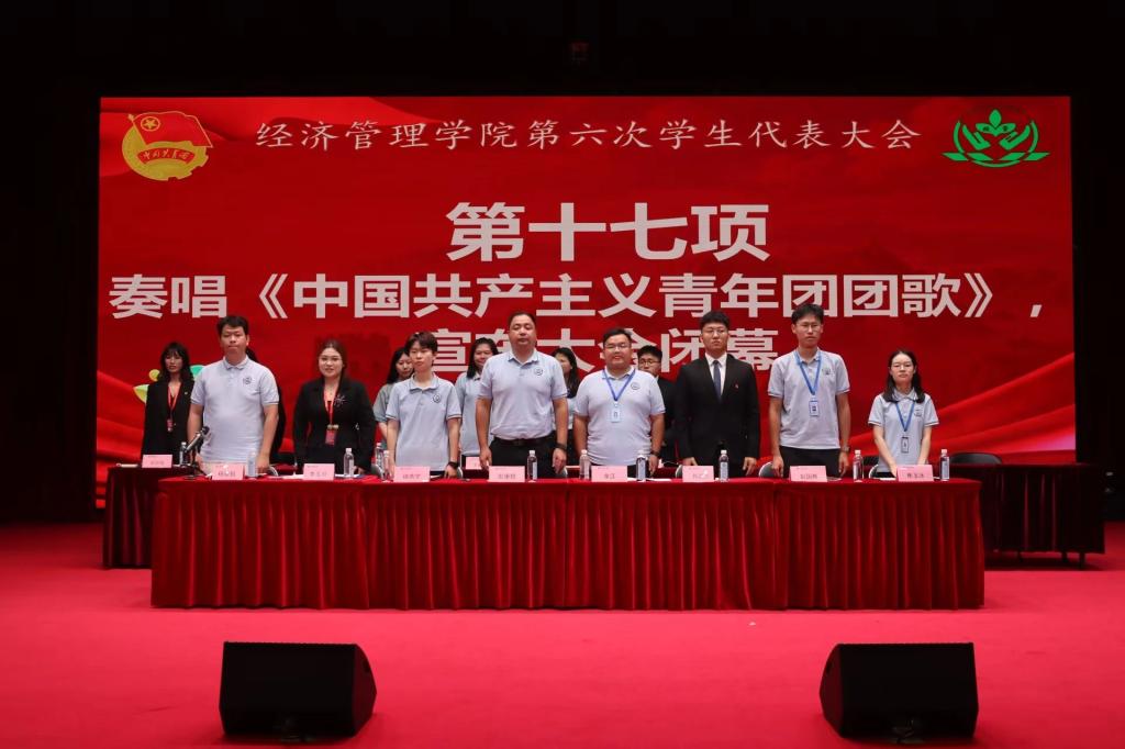 最后,全体与会成员高唱《中国共产主义青年团团歌》。至此,William威廉官网第六次学生代表大会在高昂嘹亮的歌声中圆满结束。