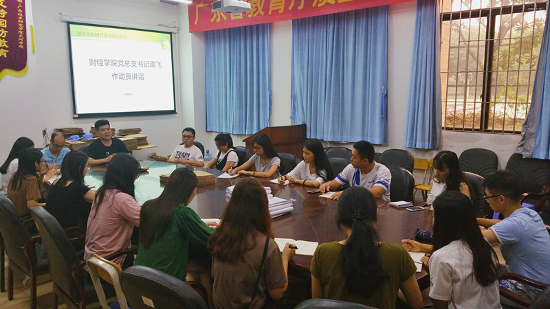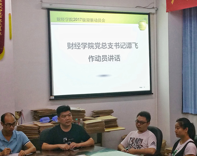 接着,党总支书记谭飞对迎新工作做动员讲话。他提出了几点要求,第一,迎新是一项重要的工作,必须提前确定好物资,落实好人员,每一个工作人员需认真负责,以身作则;第二,迎新时工作人员需合理分配,注意对新生的语言表达方式,向新生传播正能量,要体现出财经学院的工作水平和团队建设;第三,迎新时要注意人身财产安全,提醒新生注意防盗防骗。最后,学工干事颜冬果对本次会议进行总结,要求工作人员从现在开始要进入迎新状态,不能疏忽任何一个环节。