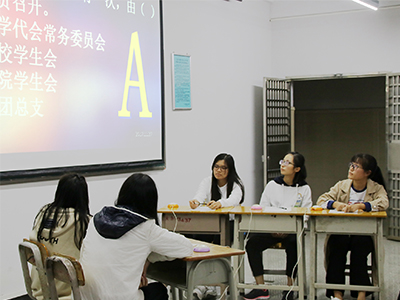 (通讯员 张碧晖)11月27日晚,我院在12栋教学楼举行三爱活动“爱学校”知识竞赛决赛,出席此次活动的有我院党总支书记谭飞、党总支组织委员颜冬果、团总支书记黄秋芬、团总支副书记兼学生会主席周茵茵等团、学干部、各参赛选手及各班学生代表。