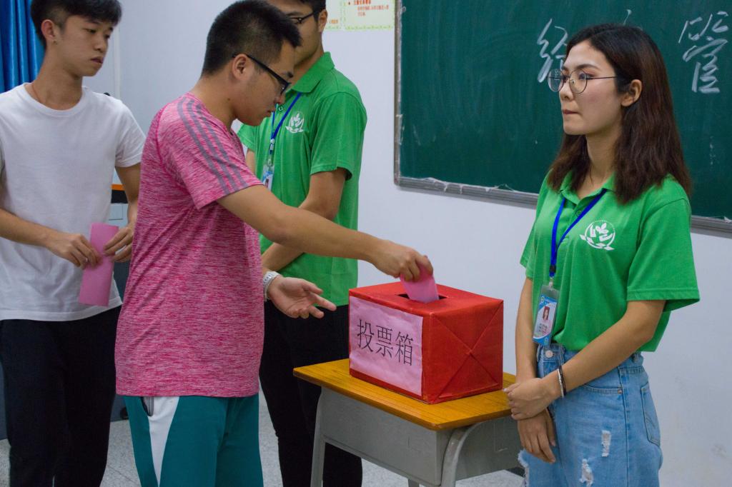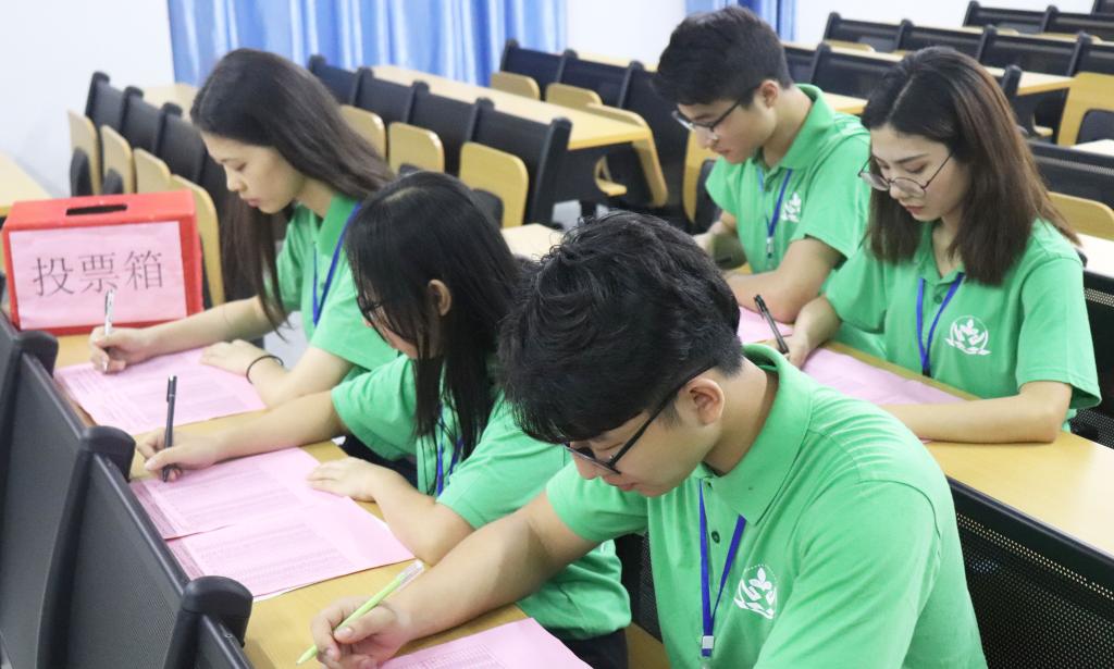 会议初始,全体起立,齐声高唱《中国人民共和国国歌》及《中国共青团团歌》;随后,团总支书记黄秋芬讲话,她全面回顾了过去一年我院分团委的各项工作,肯定了我院团委在落实基础团务工作的努力,同时希望全体团员能够继续加强学习,树立政治意识、责任意识,努力履行职责,竭诚为同学服务。最后,现场150名团员代表采取匿名投票方式,从59名参会候选人预备人中差额选举出49名团员正式代表,同时推选出2个列席代表;在现场工作人员的紧张统票后,我院团总支副书记兼学生会主席周茵茵公布投票结果。