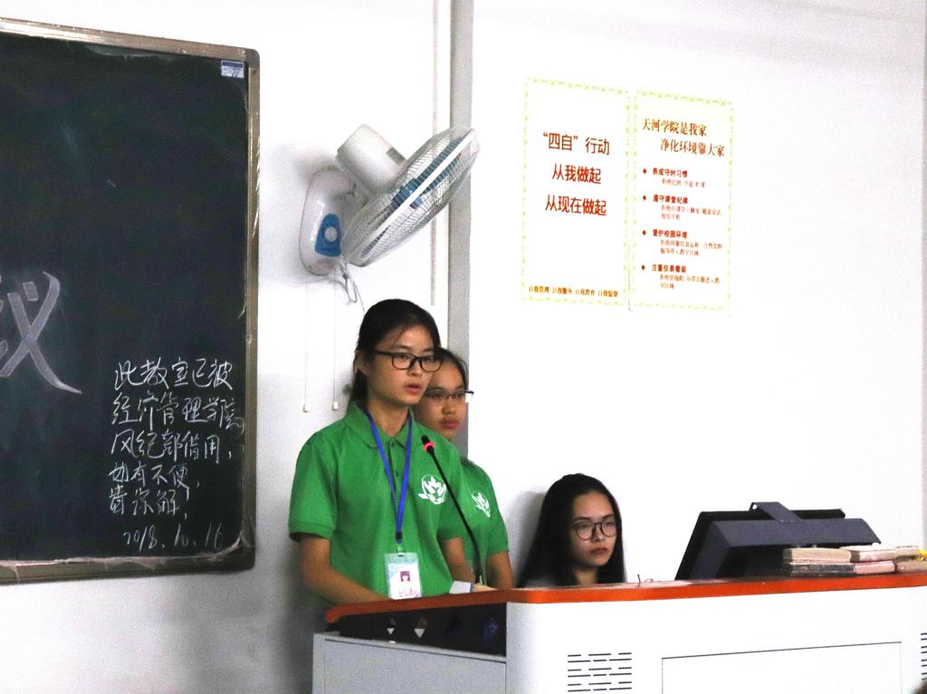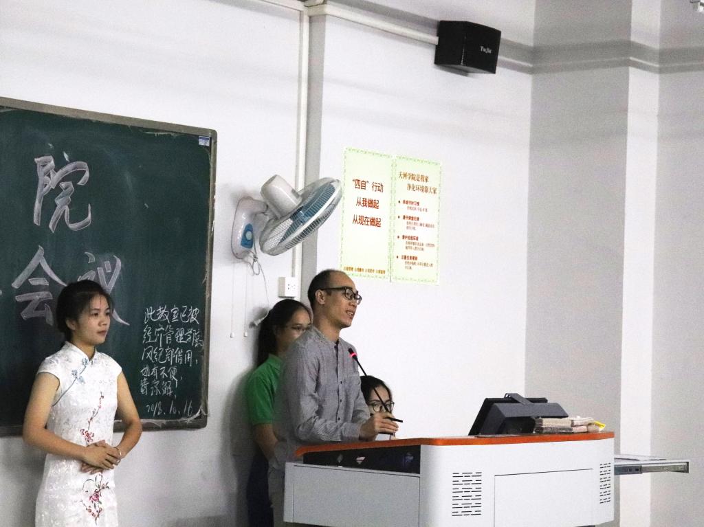 最后,学工组组长颜冬果表示每一个班级都应严格遵守学院规章制度,风纪部及各位班委更应严格按照要求执行工作。同时,他希望在团学及全体学生的共同努力下,我院院风越来越好。