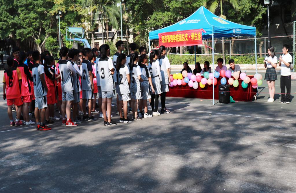 (通讯员 林浩桐)我院第十七届“新生杯”篮球赛开幕式于11月8日下午在灯光篮球场三号场举行。出席本次活动的嘉宾有我院团总支书记黄秋芬、团总支副书记兼学生会主席吕端翼、学生会副主席黄晓欣,秦万年,罗瑜琳、以及18级全体球员代表。