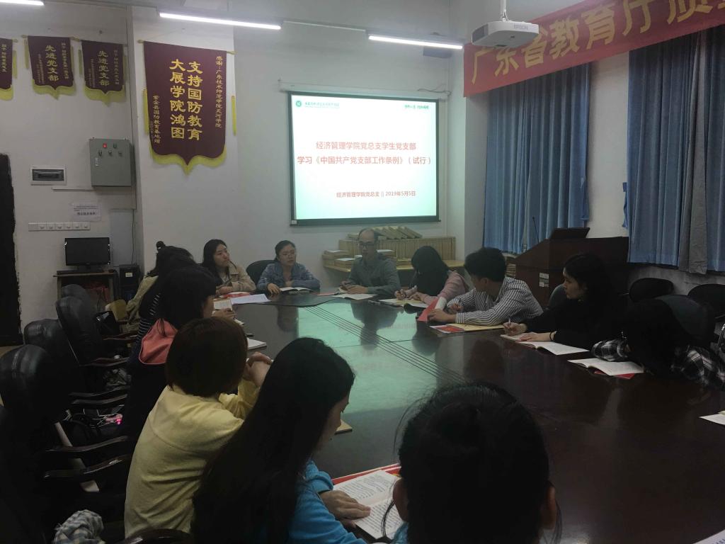 (通讯员 郭培琼)5月5日,我院党总支在11栋108会议室开展学习《中国共产党支部工作条例(试行)》的活动,共32名学生党员参加学习活动,三个学生党支部书记钟月月、张宁、颜冬果老师出席学习会。