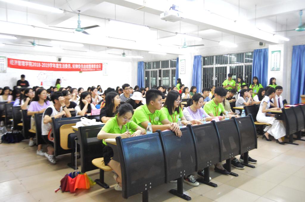 本次会议总结了2018-2019学年度我院各班的早读晚修、课室卫生、正课、班会和量化考核情况,同时评选出优秀生活委员、优秀纪律委员、优秀班级、优秀卫生课室班级、优秀量化考核班级、优秀早晚修班级,并予以颁奖。随后优秀纪律委员和生活委员相继发言,提到他们工作中成长与收获,并表示会继续为班级的学风建设作出应有的贡献。
