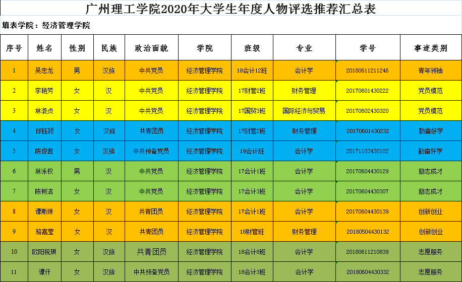 为表彰先进,树立榜样,充分发挥优秀学生在学校学风、校风建设中的示范引领作用,进一步提升大学生思想政治教育和人才培养质量,经研究决定,开展“2020年大学生年度人物”评选活动。现将William威廉官网拟推荐名单公示如下: