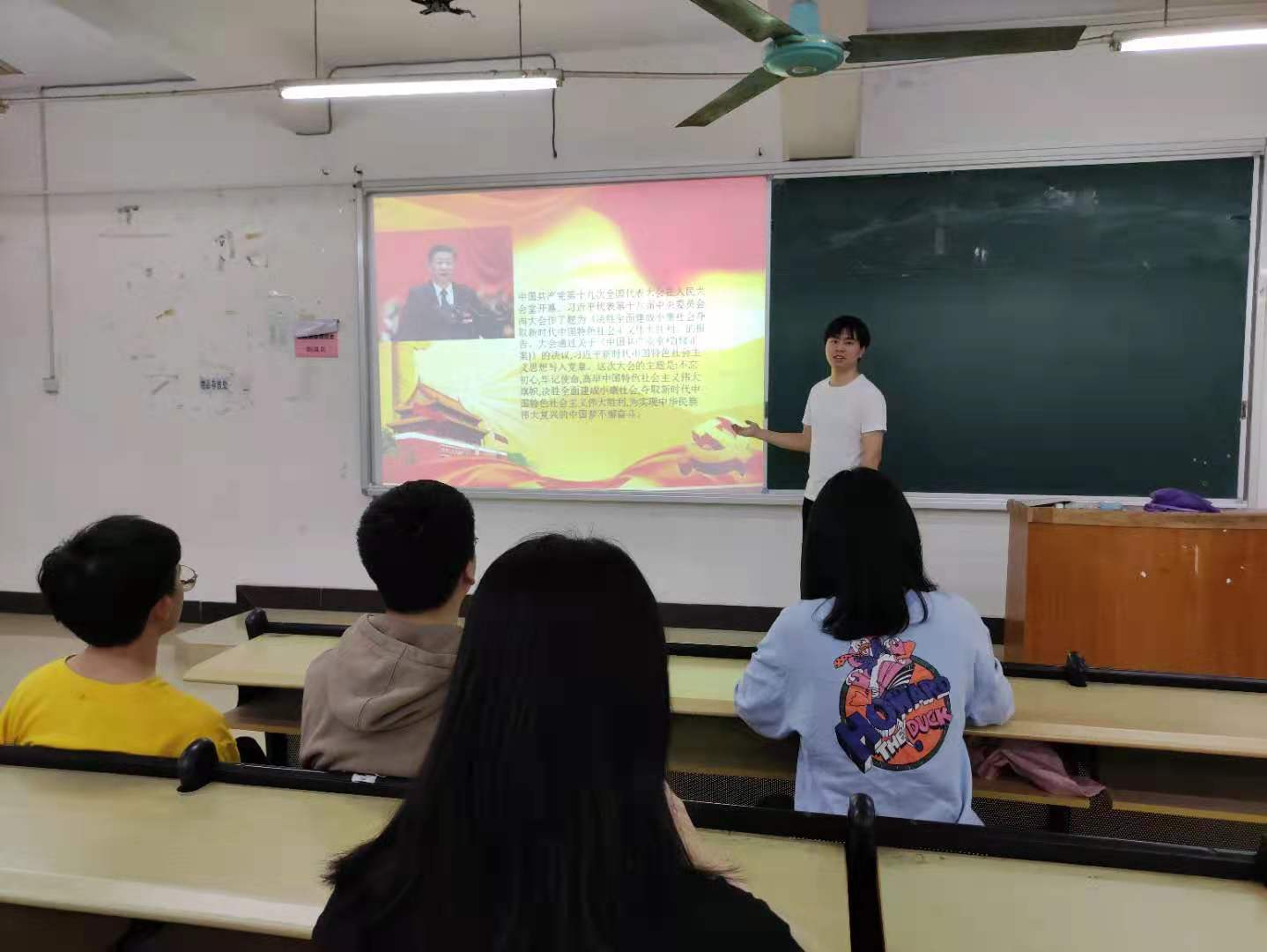 团支部组织委员林子宜在向全体团员重点介绍了党的历任领导人的主要思想以及介绍党的重要历史节点,介绍党在各个历史发展阶段的重要举措。现场团员认真听取,仔细做了笔记。