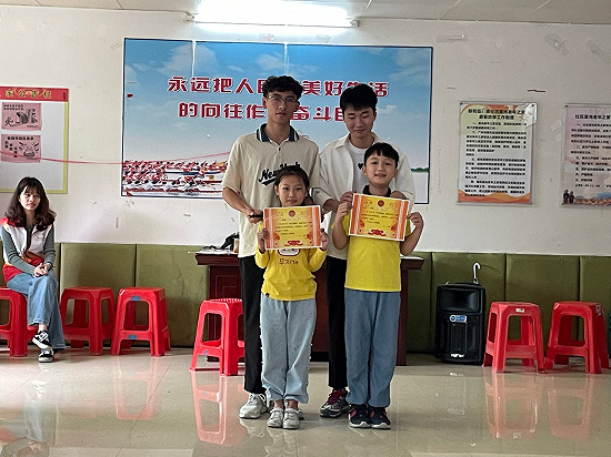 活动期间,同学们通过和小朋友们一起参与体育锻炼踢毽子,娱乐游戏(抢凳子、二人三足),才艺表演唱歌,让小朋友们在游戏中增强集体荣誉感和责任心,同时也加强了同学们的凝聚力。