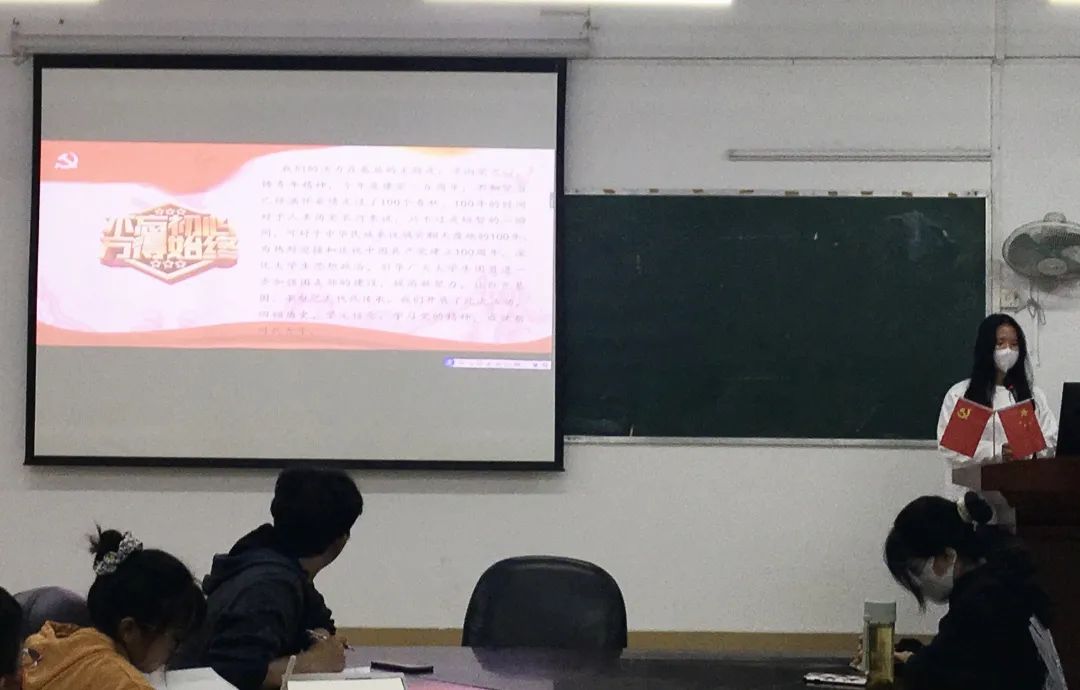 在各团支部代表演讲结束后,团总支•学生会组织部审计委员黄小颖针对各代表的演讲进行发表看法。她表示,本次“青春向党,奋斗强国”主题团日竞赛的活动形式和视频内容相对上次评比有了较大的提高,主题鲜明,活动内容紧扣主题,但在创新、突显本团支部特点方面需要提高。