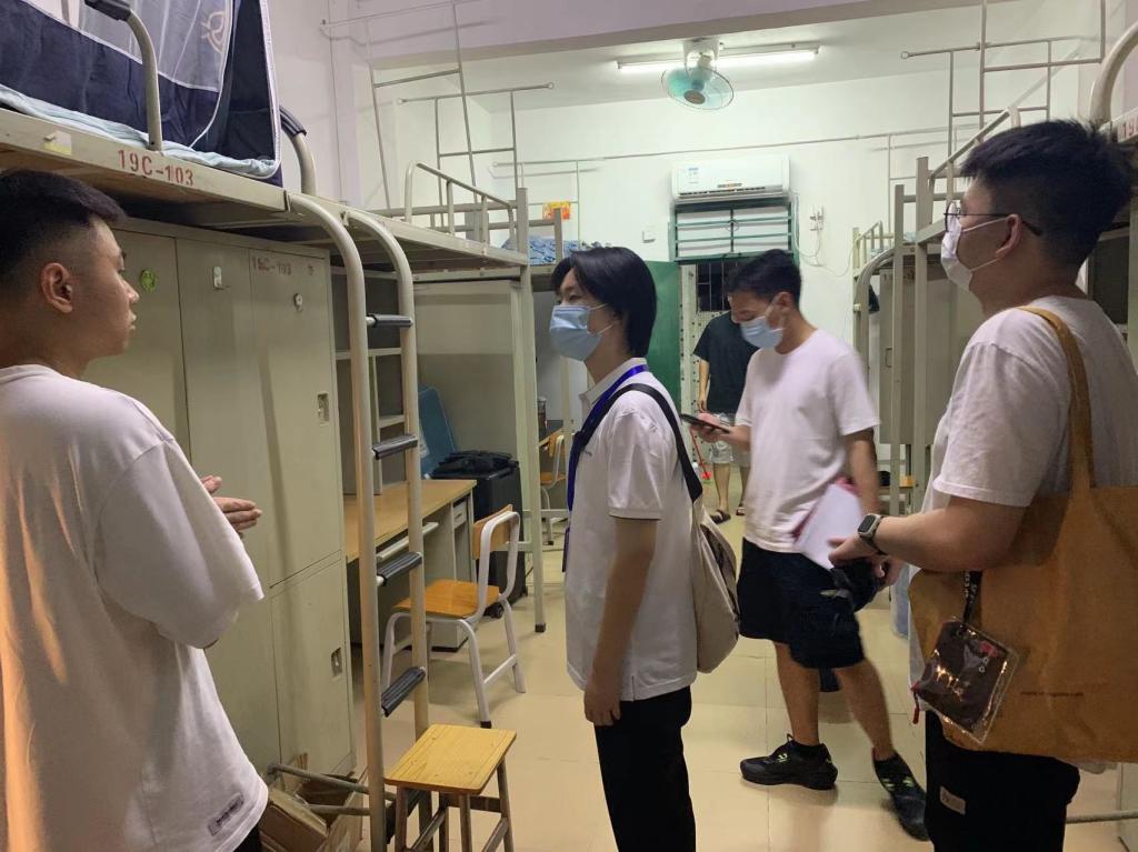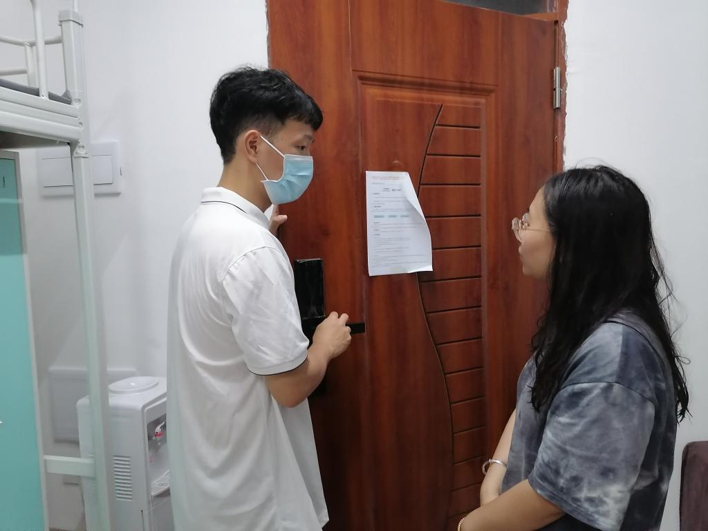 辅导员们通过走访宿舍鼓励同学们尽快调整状态,适应新的学习与生活,也表达了对于同学们能够加强自我管理的期许,鼓励学生形成和谐文明和勤学上进的寝室文化。殷切期望新生们在大学生活中,勇于拓展自己的各个领域,开发自己各方面的潜能,呈现出积极向上的精神风貌。辅导员们检查了宿舍卫生,还提醒同学们做好个人防护,戴口罩,勤洗手,保持良好的卫生习惯,同时注意日常用电及门窗紧锁等安全问题。