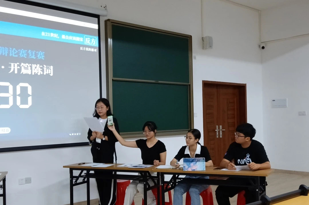 第一场比赛是反方说的都队对阵国际会计。在开篇立论环节,正方一辩先发制人,提出了“在21世纪,愚公应该移山”的观点,并对此进行辩论;反方一辩也从容不迫,提出了“在21世纪,愚公应该搬家”的观点,并对此陈述,双方一辩各有说法,步步紧逼,立论有据。正方二辩讲述了愚公移山当中的移山精神,在21世纪应该继续坚持这种敢闯敢试,敢为人先,埋头苦干的移山精神;随后反方二辩论述到,愚公不应该继续移山,而应该搬家,在当代应当懂得变通、善于变通,才更适合21世纪的社会发展。最后,在双方四辩的总结陈词下,结束了今日精彩的辩论赛。双方四辩各自针对对手逻辑上的漏洞逐一回击,并对队友的发言做出了总结与归纳。他们用有言有料的话语,赛出了风度也赛出了风采。第一场反方反方说的都队胜出,一辩:23会计6班吴秋怡,二辩:23会计7班马玉玲,三辩:23会计3班林佳妮,四辩:23国贸1班赵程雨,最佳辩手:正方二辩23会计1班黄莉。