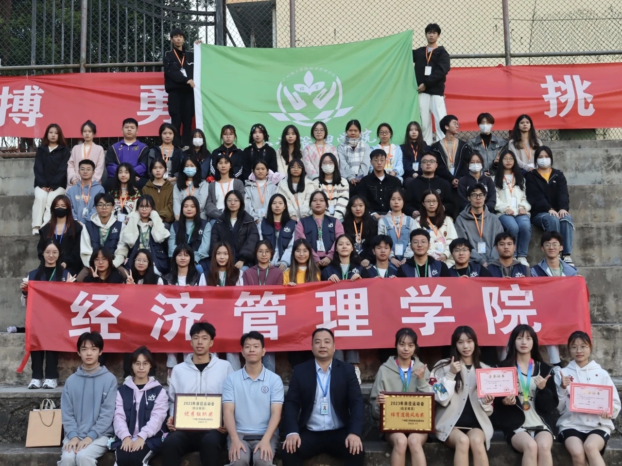 本次运动会的顺利进行离不开运动员们的努力奋斗,更离不开各部门工作人员的辛勤付出和加油鼓劲。通过此次运动会的闭幕,看到了同学们努力奋斗的状态,感受到了同学们团结友爱的力量,还能助力鼓舞经管学子们继续发扬团结协作、拼搏进取的体育精神,携手并进,共创美好未来!
