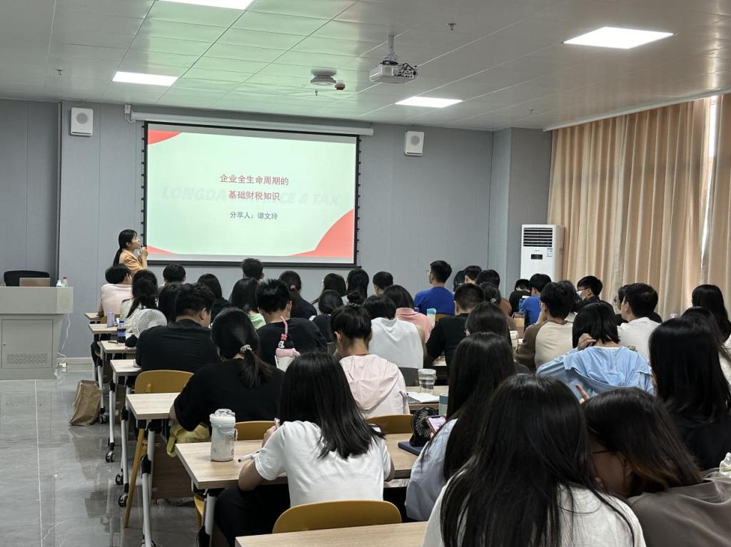 第三周,龙达财税公司税务师谭文玲老师为学生们带来了一场关于税务处理操作技能的精彩培训。详细介绍了税务会计的各个环节,包括抄税、抵扣、申报税款、代办出口退税相关手续、税款缴纳、发票的领购及使用等。她结合了企业的真实税务案例,让学生们更加直观地了解税务处理的实际应用。学生们在谭老师的指导下,逐渐掌握了税务申报的技巧和要点。