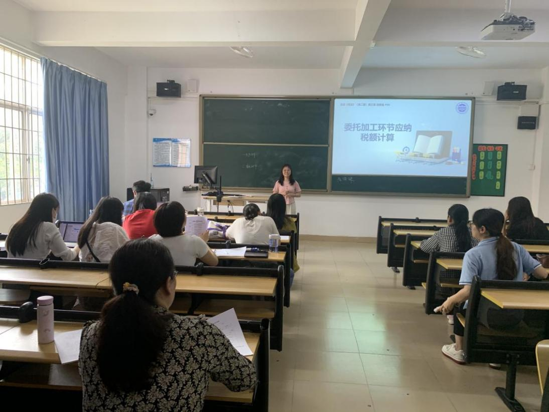 文颖老师在讲授《政府与事业单位会计》课程的行政支出知识点时,通过采用财务会计和预算会计对比的方式,能够让学生更加了解清楚两种会计处理的区别,文颖老师的教学风格非常稳健,授课内容条理清晰,表达流畅。陈海珠老师讲授《税法》消费税中委托加工环节及计算,内容讲解十分详细,以逻辑精密的方式呈现课程内容,将复杂的概念清晰地阐释给学生。她善于运用提问的技巧,巧妙地抓住听课者的眼球,引导他们积极思考,并跟随教师的思路一步步深入探索。这种教学方法使得学生们在课堂上能够更加专注、积极参与,从而更好地理解和掌握所学知识。