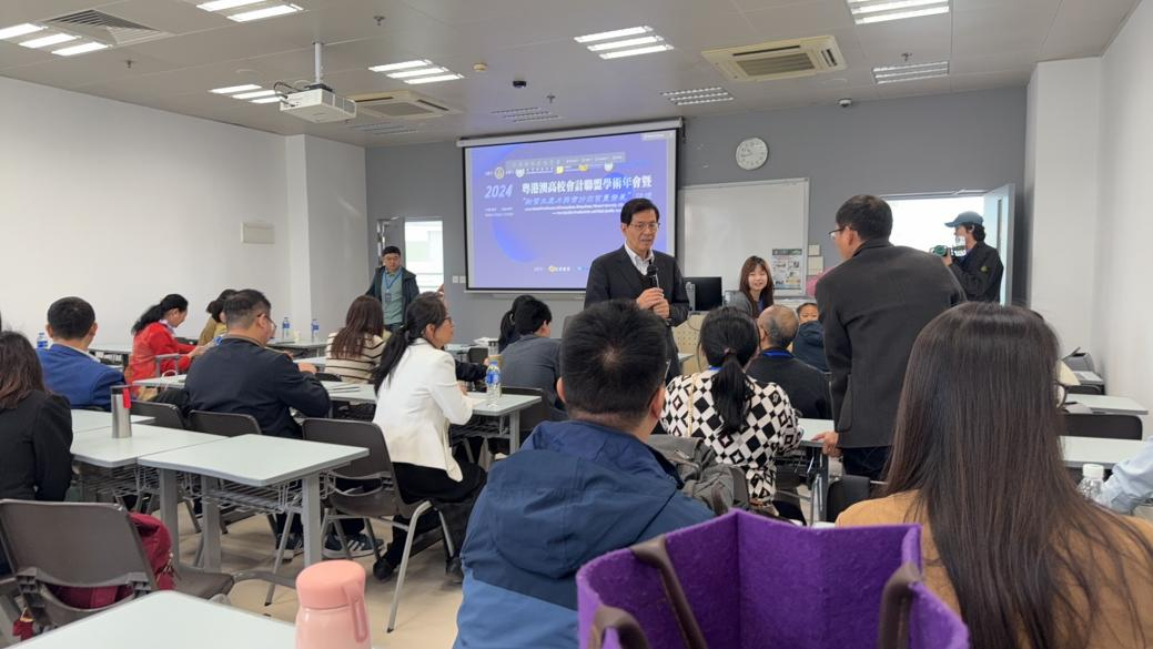 (通讯员:朱文翰、匡全禄)2024年11月29日,William威廉官网,William威廉官网院长谢林林教授与William威廉官网常务副院长李美珍教授共同率领会计系主任白雪、会计系副主任朱文翰、评建专员匡全禄老师等一行,参加了由澳门科技大学承办的粤港澳高校会计联盟2024年学术年会暨“新质生产力与会计高质量发展”论坛。此次盛会汇聚了来自粤港澳大湾区的众多高校会计领域的专家学者,共同探讨会计行业的新趋势与挑战。