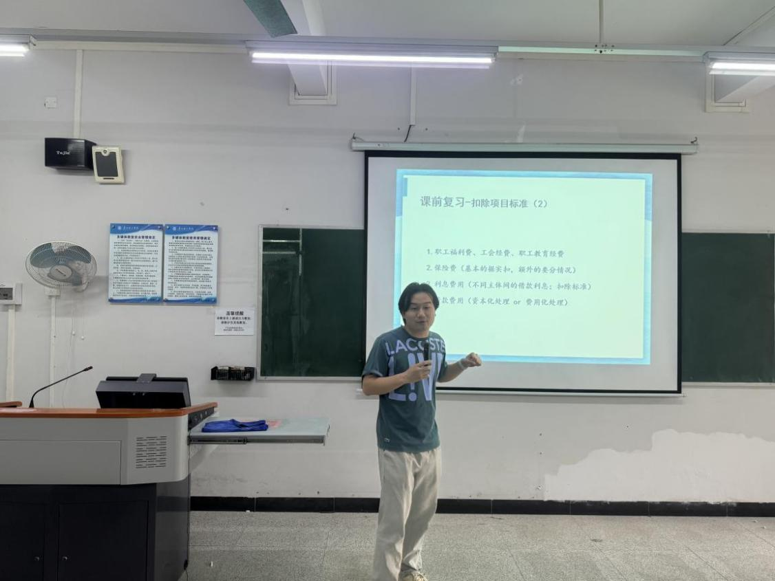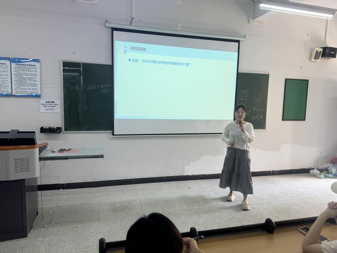 首先由张黎鑫老师围绕“企业所得税的税前扣除项目”进行讲解,他的授课重点突出,详略得当,对于重点内容“业务招待费的扣除规定”进行了详细解释,并合理利用学习通提问的方式,加强与学生之间的互动,突出以学生为主体的教学理念。接着,由陈海珠老师上台磨课,她所选择的授课内容是“个人所得税的专项附加扣除”,陈老师的授课风格幽默有趣,善于结合实际案例讲解理论性知识,通过一个个丰富的案例,使学生在不知不觉中将知识牢记于心。