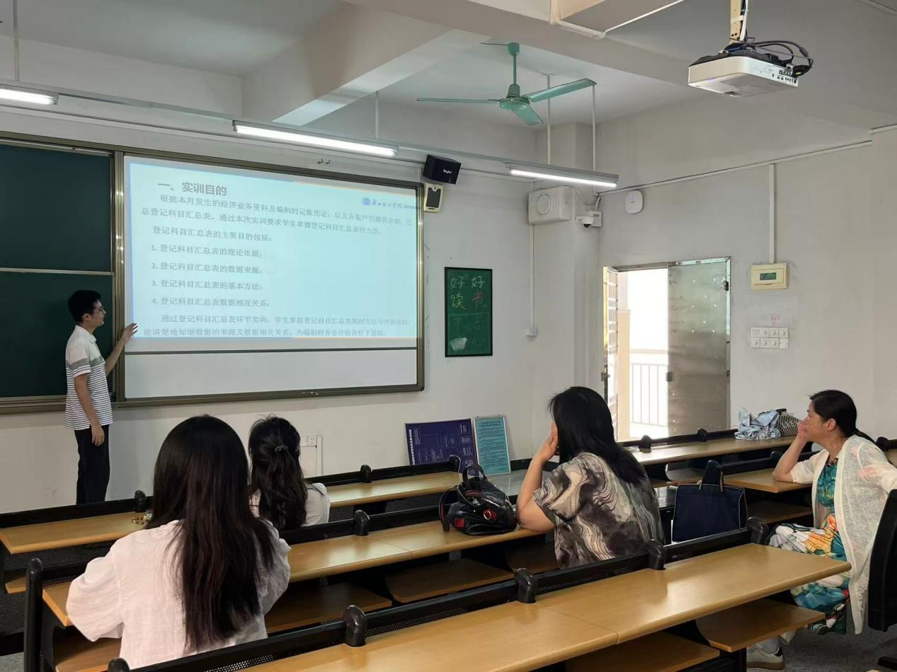 罗老师也围绕《基础会计》课内实训部分进行了磨课。罗老师提前收集学生实训中高频错误(如“摘要表述模糊”“金额借贷反向”“附件张数漏填”),通过PPT标注与讲解,让学生直观理解“合规性”与 “精准性”对会计工作的核心意义。罗老师提到课内实训作为学生将大学阶段所学专业知识进行综合运用的核心实践环节,对于培养学生的创新思维以及解决实际问题的能力至关重要。