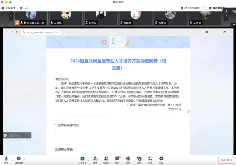 本次会议主要对广州理工〔2023〕415号文件与广州理工教函〔2024〕8号文件进行学习,并依托《统计学》课程的学科优势对于前期调研的问卷进行研讨分析。组员们对涉及修订人才培养方案的两个关键文件进行了集中学习,充分认可其中的指导意见与政策方向,并普遍看好这一举措对于培养适应时代发展的全面型和创新型人才的重大意义。大家一致认为,这是一个深化改革、提升教育教学水平、培养适应时代发展的全面型和创新型人才的重要举动。