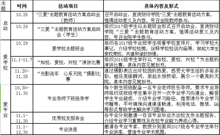 为培养积极向上的校园文化,促进学生热爱学校,认同专业,夯实技能,提高人才培养效果,经学院党政联席会研究决定,在全院开展爱学校、学专业、爱技能等“三爱”主题教育实践活动。为使本次活动能高效有序开展,特通知如下: