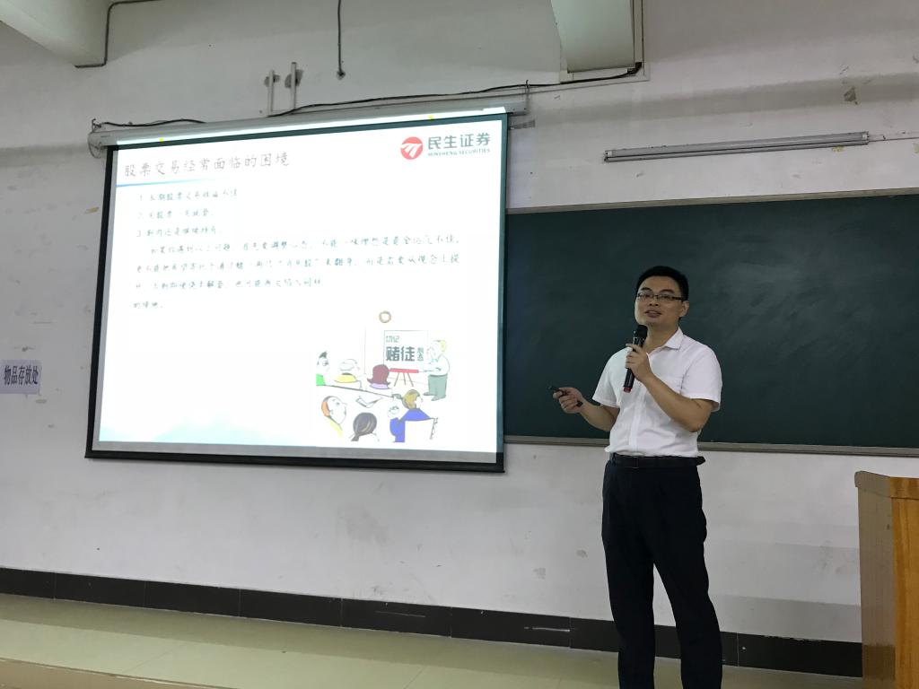 (通讯员 张建龙)11月15日晚,第六届“民生证券杯”系列讲座第二讲在7-118阶梯教室开讲,此次讲座由民生证券广州营业部投顾主管赵栩龙、投资顾问伍仕君两位老师主讲。