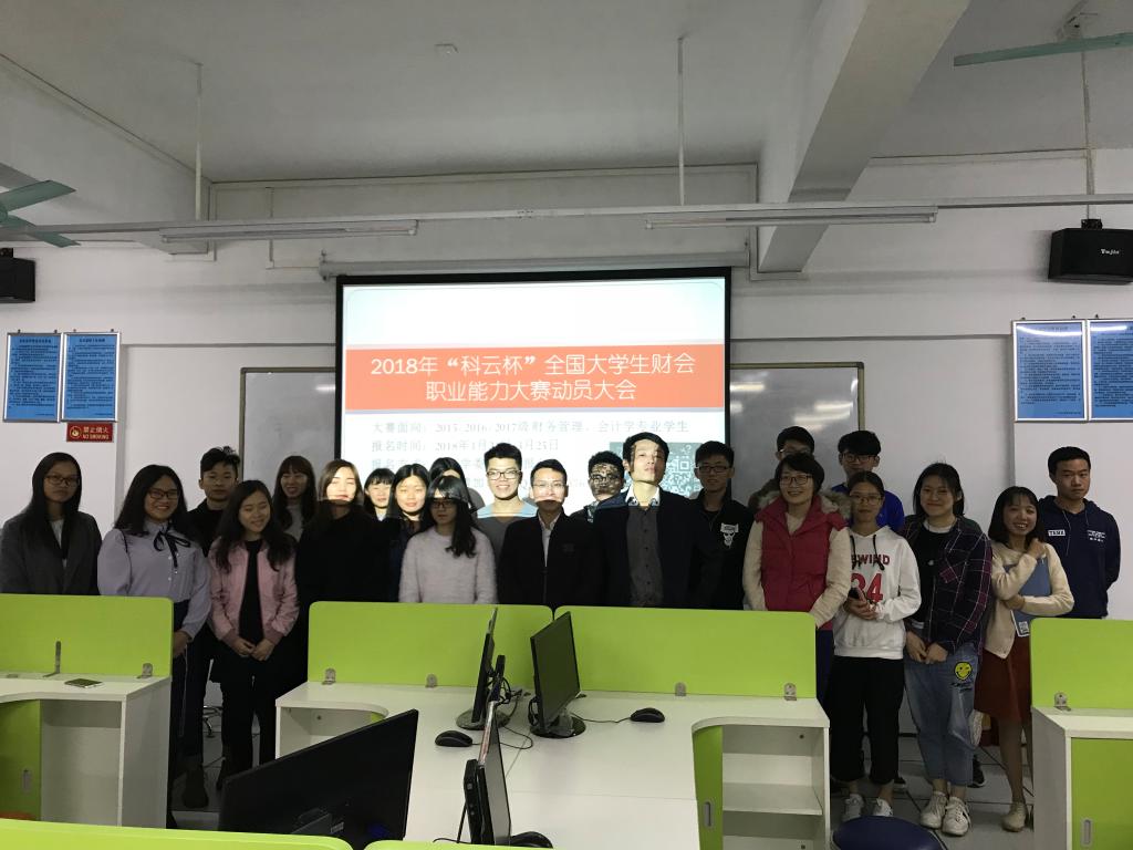 (通讯员 张建龙)为鼓励同学们积极参加学科竞赛,3月21日晚,我院在12-504召开2018年“科云杯”大学生财会职业能力大赛动员会,我院副院长陈天勇、会计系主任陈平璋、大赛指导老师伍雄伟及实验实训中心主任张建龙出席了动员会并讲话,财务管理、会计学专业各班级学生代表100余人参加大会。