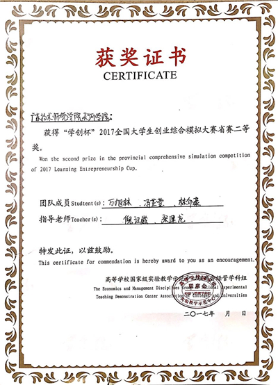 财经学院学生获“学创杯”全国大学生创业综合模拟大赛省赛二等奖