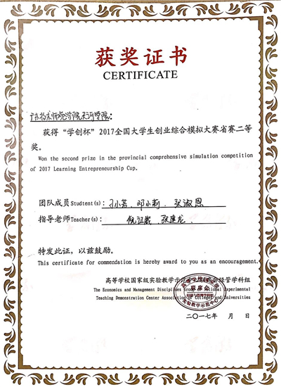 赛前,参赛团队的所有成员利用课余时间和周末休息时间积极训练,研究经营策略。在比赛过程中,参赛队员分工明确,团结协作,经过4个季度的模拟经营,最终我校三支代表队都获得了优异的成绩。由刁小芳、邓小莉和张淑恩组成的代表队和由万旭林、林介豪和冯芷莹组成的代表队在比赛中荣获二等奖。
