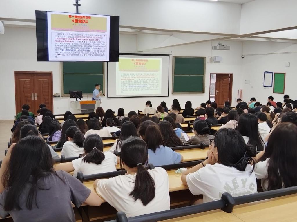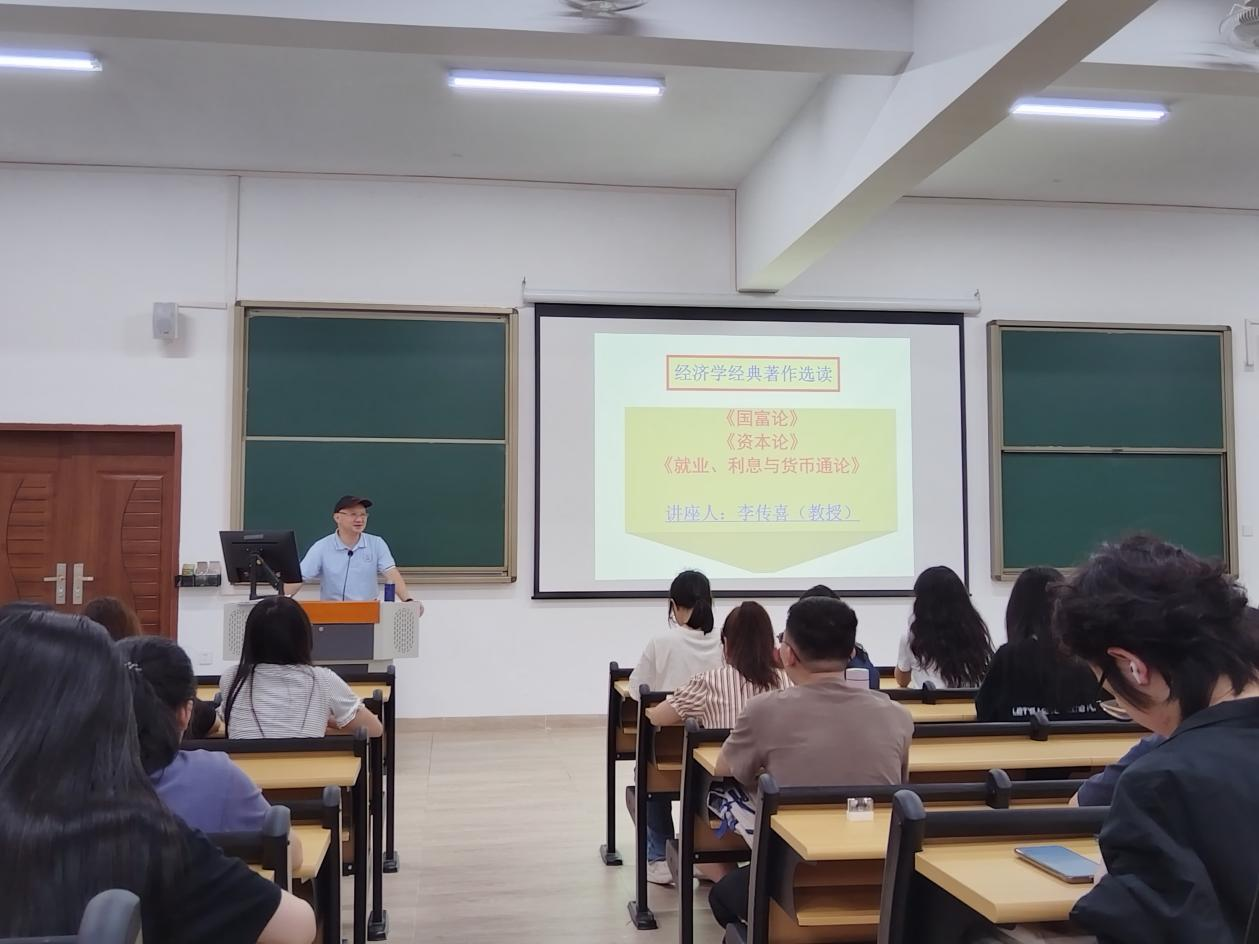 讲座开始前,学生们早早地占好座位,现场座无虚席。同学们期待着李传喜教授的精彩讲解。讲座中,李教授首先介绍了《国富论》的核心思想,详细解读了亚当·斯密的劳动分工理论及其对现代经济学的影响。随后,他深入剖析了《资本论》中马克思关于资本主义生产方式的见解,以及剩余价值理论的现实意义。最后,李教授带领学生们探讨了《就业、利息和货币通论》中凯恩斯的经济政策观点,特别是在当前经济环境下的应用价值。
