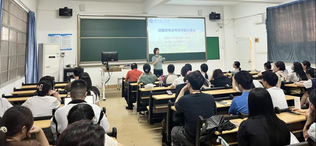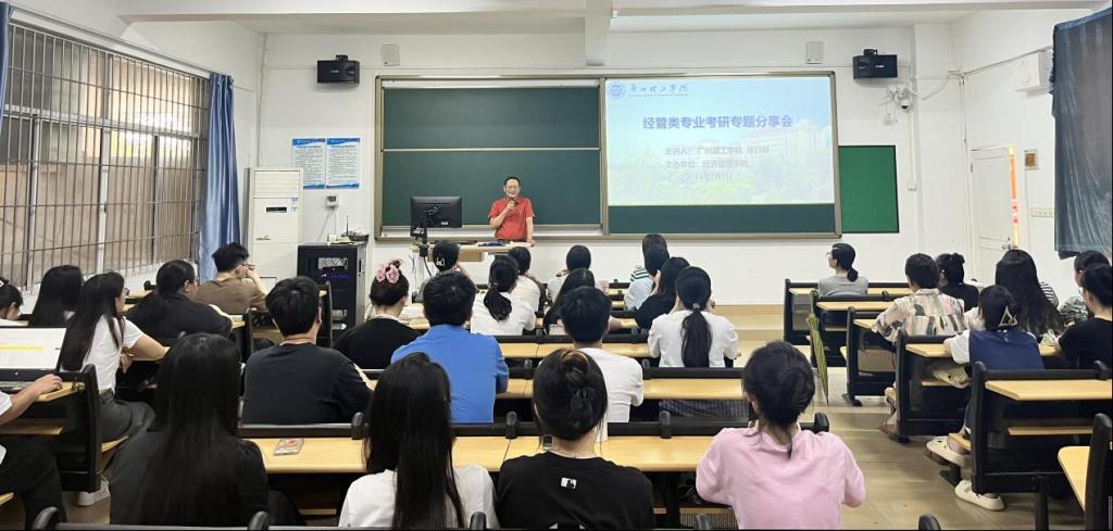 (通讯员:胡佳怡)2024年7月1日下午,一场针对经管类专业考研的专题分享会在7栋203教室举行。本次分享会由陈少英副院长主持,特邀张日新副校长担任主讲人。张校以其丰富的教育经验和深刻的人生感悟,为在场的学生们带来了一场精彩纷呈的考研指导讲座。