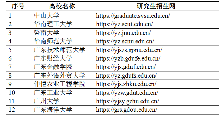 为方便同学们快速检索到目标院校的相关报考信息,下表列示了部分广东高校研招网清单,仅供参考。