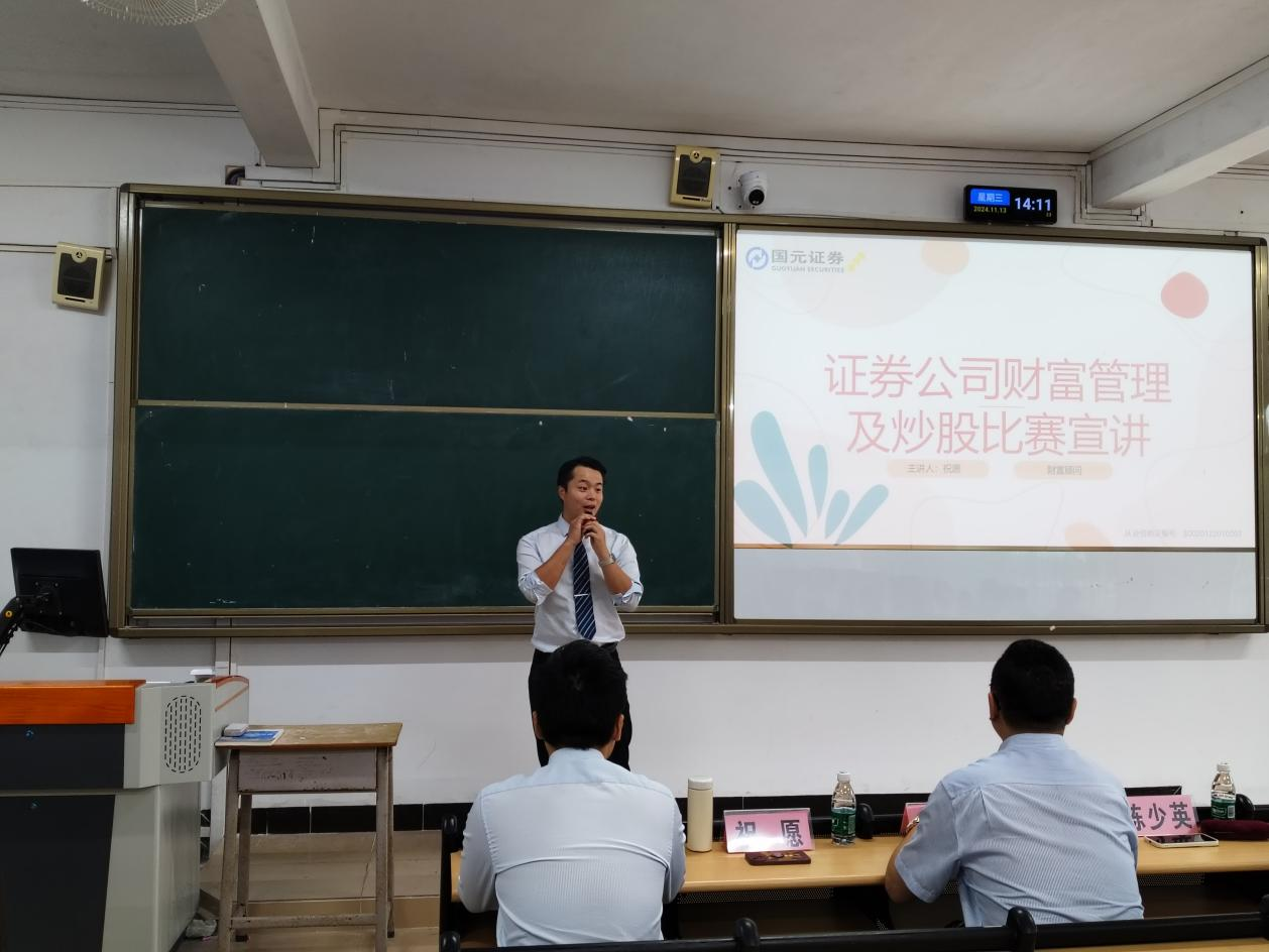 接着,财富顾问祝愿不仅为同学们讲授了金融投资的专业知识,还强调了投资理念和风险意识的重要性,他指出,模拟投资大赛是一个强化同学们投资理念和风险意识、培养专业敏感性的绝佳机会,通过模拟股市投资交易市场的各个环节,同学们可以加强学习证券知识的热情,丰富校园文化生活,同时也可以为对股市投资有兴趣的学生提供一个展现自我的舞台。