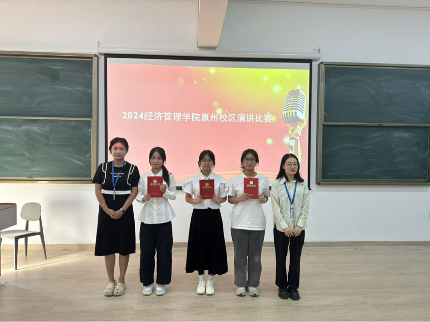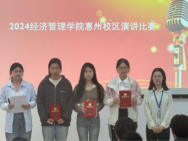 工作人员正仔细核算分数,准备揭晓获奖名单。随后,评委们郑重地为获奖选手颁奖。本次演讲比赛获得一等奖的是24财管2班车映乐,获得二等奖的是24会计3班贾圆媛,获得三等奖的是24会计8班关惠怡;获得优秀奖的分别是24会计2班陈米、24会计3班黄敏怡和24会计6班舒颖;获得参与奖的分别是24会计6班肖懿庭、24会计4班张紫胭和24会计9班卢诗宇。