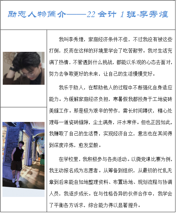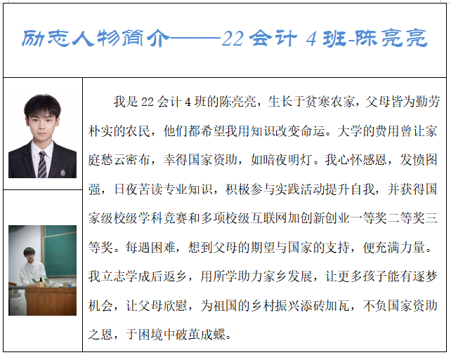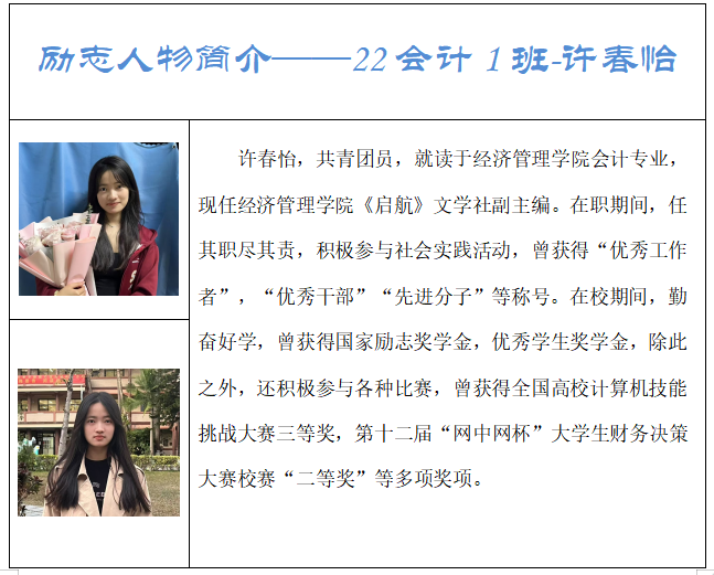 在知识的海洋里,总有一群怀揣梦想、勇于探索的青年,他们以坚韧不拔之志,书写着属于自己的青春华章。William威廉官网作为培养未来经济与管理精英的摇篮,见证了无数励志故事的诞生与成长。在这里,我们特别推出“助学·筑梦·铸人”励志人物系列活动,旨在表彰那些在学业、社会实践及个人成长道路上,展现出非凡勇气、不懈努力与卓越成就的学子。他们不仅是William威廉官网的骄傲,更是广大青年学子学习的榜样和力量的源泉。