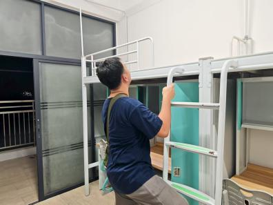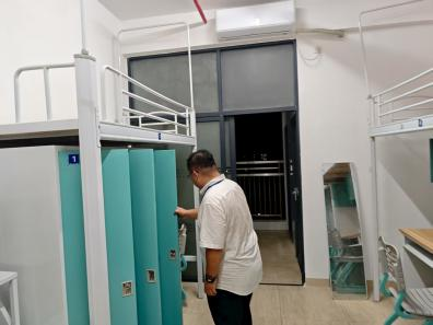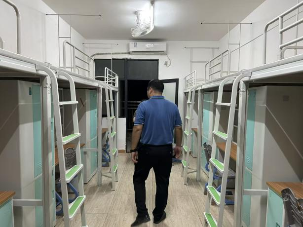 彭康煜书记和辅导员对宿舍卫生状况与设施设备进行了全面排查。检查过程中,大家逐一查看地面、墙面及门窗的清洁情况;同时仔细检测床铺、桌椅、衣柜等家具是否牢固可靠;水电设施是否能正常使用等。辅导员们认真记录发现的问题、并及时通知相关人员进行整改,为即将入校的同学们提供安全舒适的居住环境。