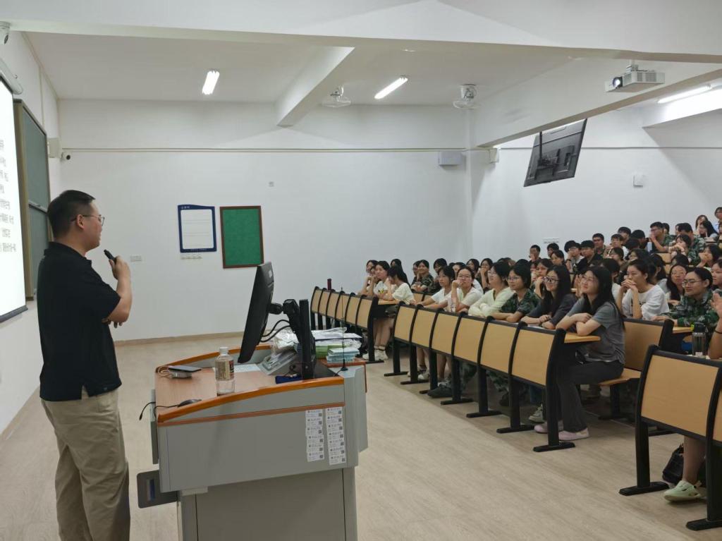 随后,优秀代表杨佳航师兄以“以小见大,洞悉未来”为主题,分享他的职业发展心得。他结合自身丰富履历,为新生讲解提升专业素养的方法,同时鼓励新生全面规划大学生活,兼顾学习竞赛、团委工作、娱乐生活与实习考证四大板块。演讲末尾,师兄建议新生充分利用大学平台锻炼自我,主动寻找机遇、挑战自我,从而实现学习目标、获得更大进步。