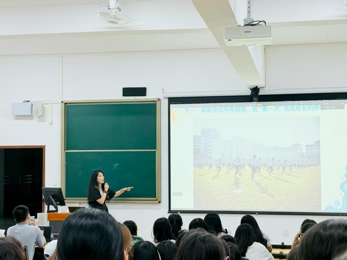 紧接着,在互动交流环节,她对着初入校园的新生,用满含关切的语重心长细细叮嘱:大学时光匆匆易逝,每一次实践都是锤炼自我的机会,每一段经历都是积累人生的财富,期待同学们在实践里收获成长、绽放属于自己的光彩。